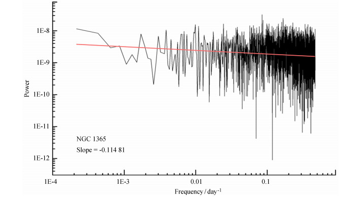 对这些源的光变曲线进行快速傅里叶变换(Fast Fourier transform, FFT),得到其功率谱如图 1(以NGC 1365为例),再通过线性拟合得到每个源的幂律指数(α),并对这些不同类型源的幂律指数进行统计分析,结果如图 2。