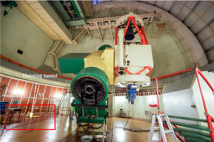 | 图 1 兴隆2.16 m望远镜及圆顶吊装通道 Fig. 1 Xinglong 2.16-m telescope and hoisting tunnel |