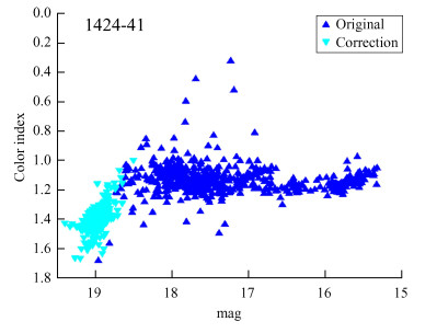 | 图 14 1424-41的色指数与星等关系图 Fig. 14 The relation between the color index and mag of 1424-41 |