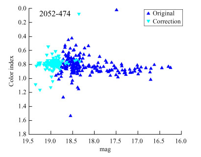 | 图 17 2052-474的色指数与星等关系图 Fig. 17 The relation between the color index and mag of 2052-474 |