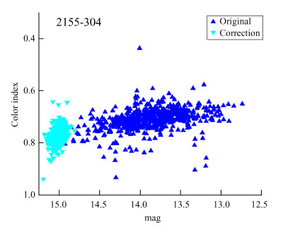 | 图 19 2155-304的色指数与星等关系图 Fig. 19 The relation between the color index and mag of 2155-304 |