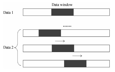 射电源信号的信噪比低,需要增加积分时间解决这一问题,但计算机对相关计算长度和傅里叶变换计算的长度都有限制[7],通过对信号的分段处理可平衡两者之间的关系。在两路信号中,需要固定一路信号作为参照信号,对另一路信号进行分段处理,第1路信号与第2路信号每段进行相关处理即实现滑窗相关。信号滑窗操作方法如图 3,将台站信号在搜索范围内以网格要求的搜索步长滑动,并在相关计算后记录互相关功率谱,提取相位后计算方差。