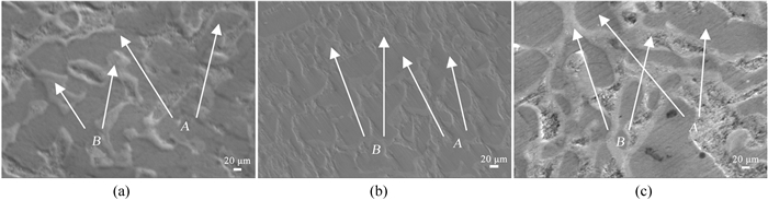| 图 3 Zr56.97V35.85Fe7.18-xCrx合金的扫描电子显微镜图。(a) x=0; (b) x=3.59; (c) x=7.18 Fig. 3 SEM image of Zr56.97V35.85Fe7.18-xCrx alloy. (a) x=0; (b) x=3.59; (c) x=7.18 |