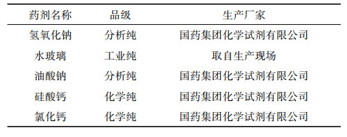 试验中使用的仪器及型号如表 1所示,超声波清洗机参数如表 2所示,试验所用药剂如表 3所示。试验所用油酸钙的制备方法是:将50 g的油酸钠溶于2 L的水中加热至90 ℃得油酸钠溶液,将25 g氯化钙溶于200 mL水得氯化钙溶液,边搅拌边向油酸钠溶液中滴加氯化钙溶液,将产生的白色沉淀滤出用蒸馏水洗涤烘干后即为油酸钙。