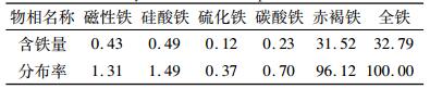 | 表 2 原矿铁物相的分析结果 /% Table 2 Analytic results of iron phase of the raw ore |