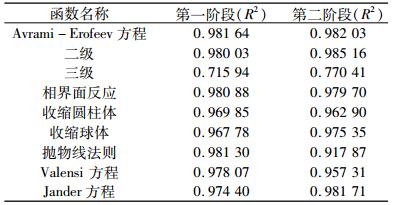 | 表 4 不同机理函数拟合直线的相关性系数 Table 4 Correlation coefficients of fitting curve for different mechanism functions |