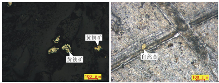 | 图 1 矿石中黄铜矿、自然金和黄铁矿的嵌布关系 Fig.1 distribution of Chalcopyrite, native gold, and pyrite in ores |