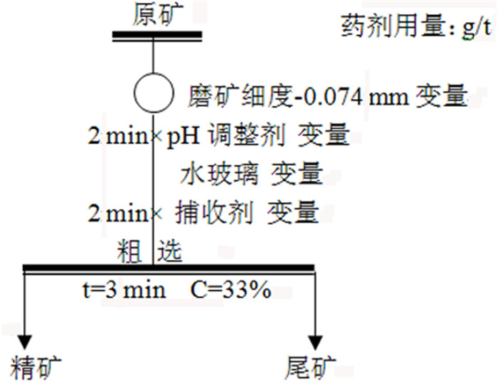 | 图 2 混合浮选粗选条件试验原则工艺流程 Fig.2 Principle flowsheet of bulk flotation roughing conditions |