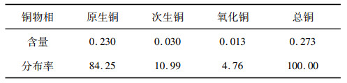 | 表 3 原矿铜物相分析结果 Table 3 The copper phase analysis result of the raw ore |