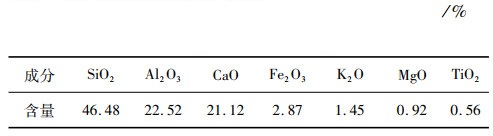 | 表 1 钼尾矿化学成分 Table 1 Chemical composition of molybdenum tailings |