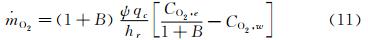 其中B为无因次烧蚀质量流率,其定义为:由边界层扩散到达壁面的氧气一部分用于离解-复合反应,另一部分用于碳的氧化反应,那么由于边界层内对流扩散因素决定的碳消耗的潜在质量流率为:
