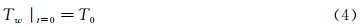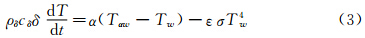 为了达到快速预测的目的,防热层结构温度分布根据一维热传导方程构建差分方程求解。根据防热层毕奥数的大小,防热层分为热薄壁和热厚壁分别使用不同的传热计算公式[15]。热薄壁传热公式如下: