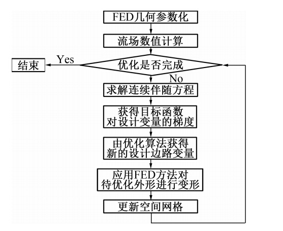 | 图 1 气动设计方法流程图 Fig. 1 Flow chart of aerodynamic design based on continuous adjoint method |