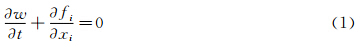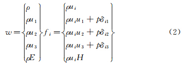 其中x1,x2,x3和u1,u2,u3为笛卡尔坐标系下的坐标和速度分量,守恒变量w和fi表示为: