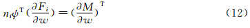 把式(10)空间积分项中流动物理量变分δw的系数项组合在一起,则可得伴随方程: