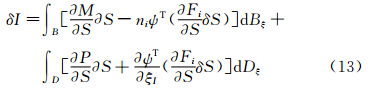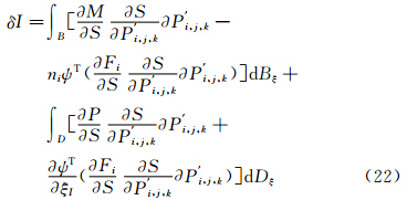 联系式(4)与式(5),把流动控制方程变分加入到目标函数变分中,则目标函数I的变分可写为:
