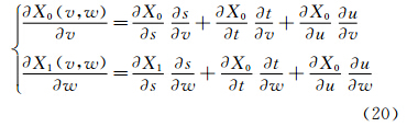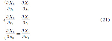 任意FFD空间组合X0(s,t,u),X1(s,t,u)共享边界s0=s1=0,曲面变形后沿v,m方向一阶导矢为:
