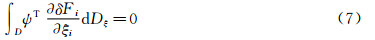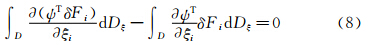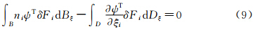 其中Fi为流场守恒量,δFi也可写成与δw、δS相关的贡献,即:引入共轭变量Ψ=(Ψ1,Φ1,Φ2,Φ3,θ)T,在整个计算空间求积,则有: