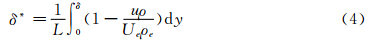 位移厚度(以总长进行无量纲化):