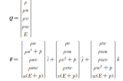 本文采用数值方法对四个二维钝楔的边界层参数进行了系统研究,得出了边界层位移厚度、边界层总压恢复、压力梯度沿流向的变化规律,对指导二元高超声速进气道型面设计具有一定参考价值。 1 控制方程及数值方法 1.1 控制方程