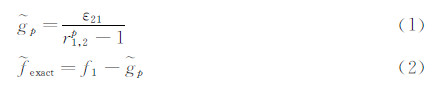 Richardson方法主要是通过对不同密度网格的计算结果进行插值,估算出当网格量趋于无穷时的值。对于两套网格计算结果,一般Richardson外插法求解过程为[16, 17]: