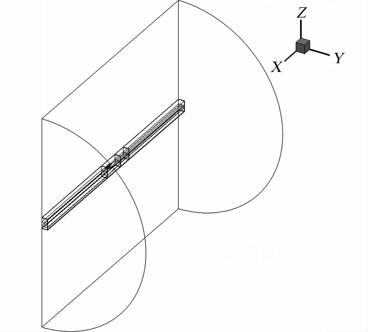 | 图 2 小展弦比飞翼标模带洞壁的计算网格示意图Fig. 2 The grid with walls |