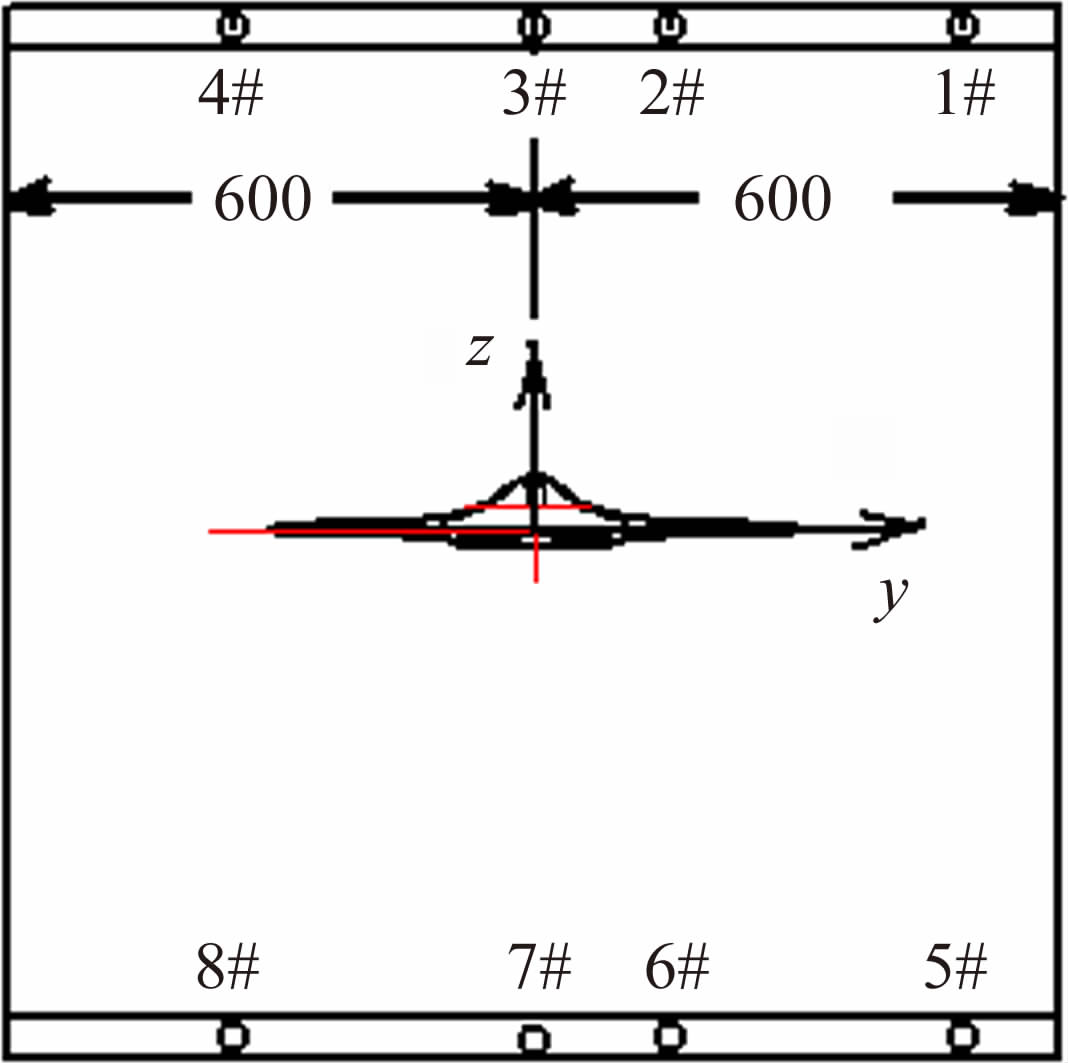 | 图 4 测压管位置示意图(mm)Fig. 4 Static pressure tube installation(mm) |