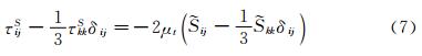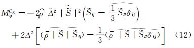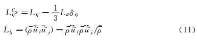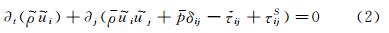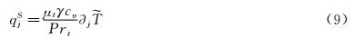 ,where R is the gas specific constant. The subgrid-scale (SGS) terms,SGS stress tensor τijS,and SGS heat flux qjS are modeled as follows: