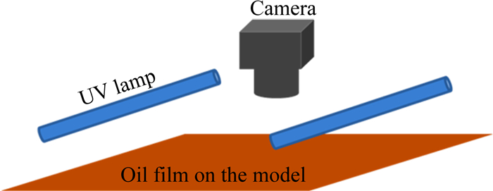 | 图 1 采用荧光油膜测量表面摩阻分布示意图 Fig. 1 Schematic diagram of global skin friction measurement based on fluorescent oil film |