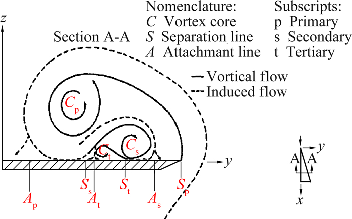 | 图 13 表面摩擦应力线标示图 Fig. 13 Detail flags of skin friction stress line |