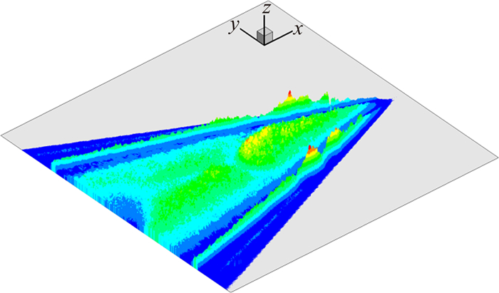 采用荧光油膜进行全局表面摩阻测量,脱胎于油膜法测量表面摩阻和光流场解算方法,具有全局测量和像素级矢量分布测量的优势。经过研究和发展,已初步具备测量模型表面摩阻分布的能力。通过三角翼模型表面摩阻测量验证实验,获得了高分辨率的表面摩阻分布信息,对于分析复杂流场结构具有较大意义。