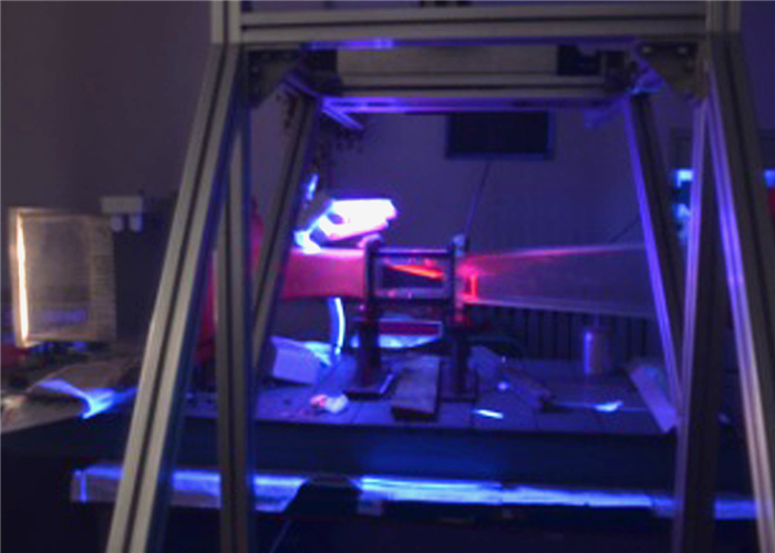 配合该荧光染剂,采用两部长波紫外灯管(600mm,20W)做为激发光源,均匀照亮模型表面荧光油膜,采用美国Princeton Instrument(PI)公司的ES4020相机作为成像设备,实现荧光油膜亮度信息到电信号的转换。