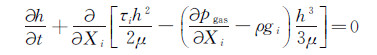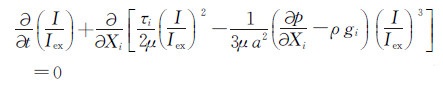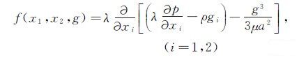 (2) 其中,i=(1,2),τ=(τ1,τ2)为表面摩擦矢量,p为压力梯度,ρ为油膜密度,方括号内第二项表征了油膜压力梯度和重力对其发展的影响。