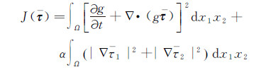 (12) 其中α为拉格朗日乘数。而为了最小化J(τ),采用变分方法计算并在边界əΩ上使用格林公式和纽曼边界条件əτ/ən=0,可以得到欧拉-拉格朗日等式如下: