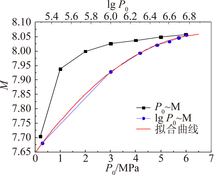 | 图 2 喷管实际马赫数~总压曲线 Fig. 2 Curves of the real M versus P0 |