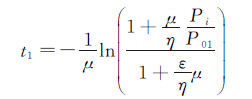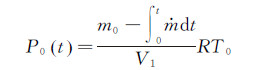 1.4.2 风洞运行时间预估随着风洞运行时间的增加,稳定段总压不断下降,真空球罐压力不断上升,当两者之间比值小于比值ε,不能满足风洞流场维持条件,流场自然堵塞,风洞试验结束。假设经过t1时间后,流场堵塞,则稳定段总压为P0(t1),真空球罐总压为:P02=εP0(t1)。