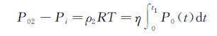 (7) Pi为真空球罐初始压力,Pa;T为气流流进球罐温度,K;V2为真空球罐容积,m3。