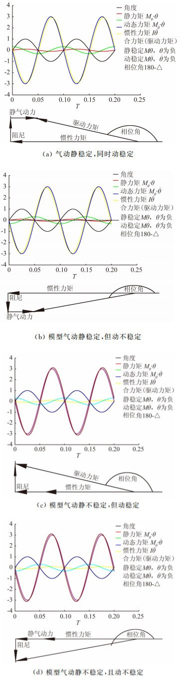a)模型气动静稳定,同时动稳定;
