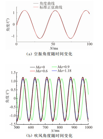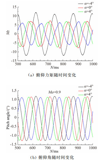 | 图 4 俯仰角和俯仰力矩振动曲线 Fig. 4 Angle and moment of pitch oscillating curve |