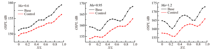 图 7 流动控制对总声压级分布影响 Figure 7 Effects of flow control on OSPL distributions |