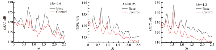 图 6 流动控制对声压频谱曲线影响 Figure 6 Effects of flow control on spectra distributions |