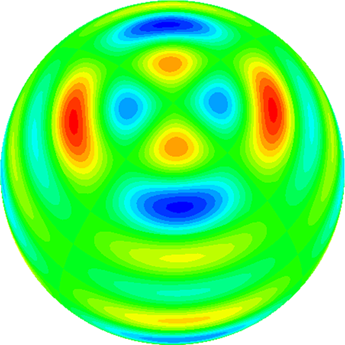 图 3 金属球表面诱导电流密度(ka=10) Figure 3 Induced surface current of sphere(ka=10) |