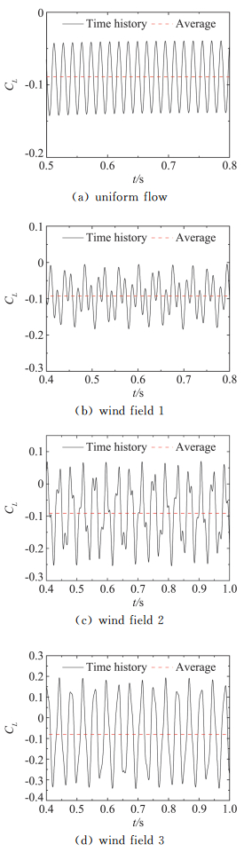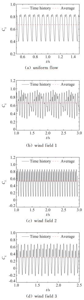 图 11 箱梁断面的升力系数时程 Figure 11 Time histories of lift coefficients for the box girder section |