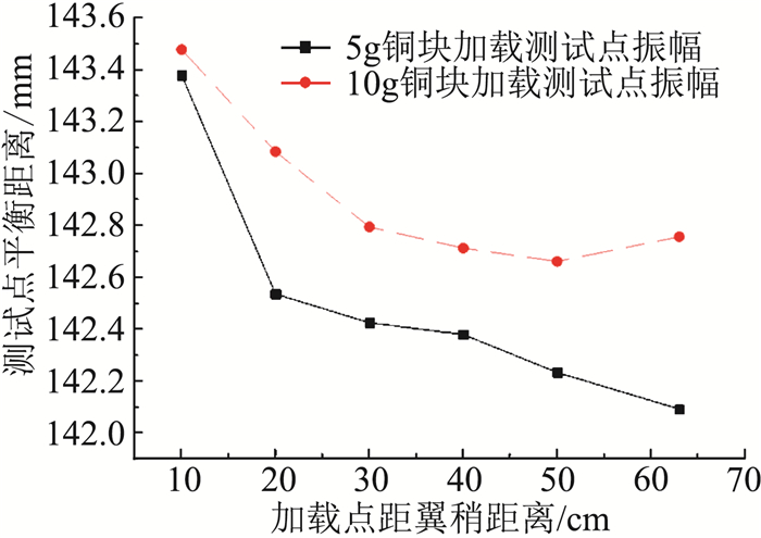 图 12 不同配重位置下的测试点振幅 Fig.12 Test point amplitude under different counterweight positions |