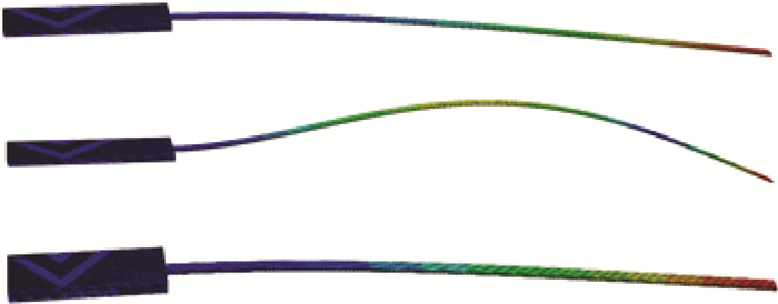 2) 对于该细长梁模型,在模型弯曲过程中,其一阶弯曲频率和一阶扭转频率都会有所增加,变形越大对应的频率也将越高,而其二阶段弯曲频率会有所降低。模型的弯曲变形对于扭转频率的影响较大,而对弯曲频率的影响较小。