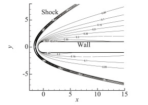 4) 高超声速流往往伴随有高温及热传导问题。这里稀薄效应对热传导的影响考虑的还不全面。因此,稀薄效应对热传导问题的影响,热传导对黏性的影响以及传热和黏性在稀薄效应下的相互影响也是今后需要考虑的问题。
