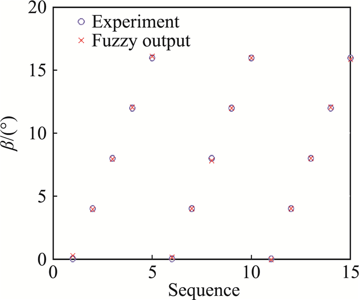 图 9 侧滑角模糊结构输出与试验值对比 Fig.9 Comparison between modeling results and experimental angle of sideslip |
