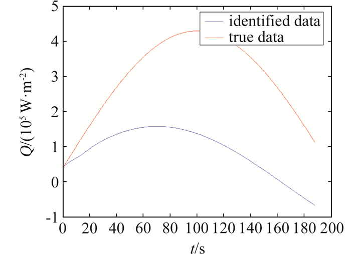 表面热流辨识属于一类热传导反问题,它是通过测量导热材料内壁的温度测点的温度历程,反演出外壁受热面的热流时间历程。热传导反问题在航空航天、机械制造、车辆工程及生物工程等领域有着广泛应用[1]。高超声速飞行器在大气层内飞行时,面临严重的气动加热问题,而对飞行器服役过程中的温度、热流等关键参数的测量是评价热防护材料使用性能、验证气动热模型和算法、指导热防护设计的必要手段[2]。但对于驻点等热流密度大的区域,通常不能直接安置温度传感器或热流传感器进行测量,一方面是由于结构开孔导致结构强度下降以及缝隙加热,引起烧蚀不同步等结构匹配问题[3];另一方面,有些传感器本体材料不能承受过高热载荷,而且传感器的嵌入带来壁温的不连续以及周向的干扰,导致热流测量结果并非真实的气动热[4],所以需要采用表面热流辨识手段监测热流。