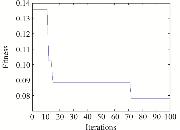 图 14 粒子群群体最佳适应度值 Fig.14 The best fitness value of particle swarm |
