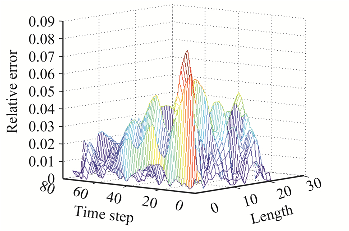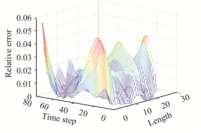 图 5 无噪声热流辨识相对误差分布 Fig.5 The relative error of identified value without noise |